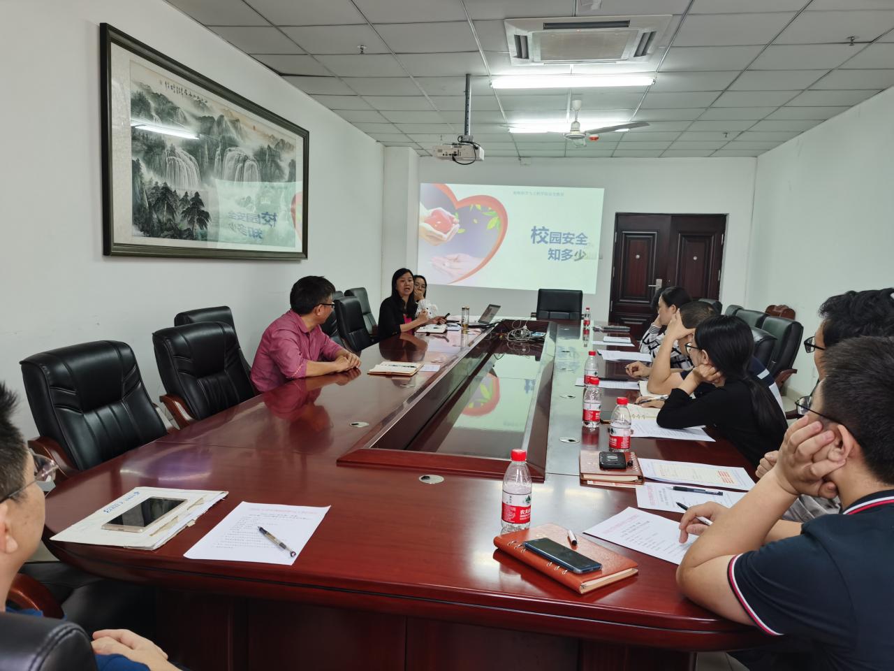 11月17日下午,我院学生工作学习交流系列活动在研发中心717会议室召开,副处级辅导员周郭军就“安全教育”进行主题工作交流分享,党委副书记胡先文出席,19级、20级班主任、全体辅导员参加。