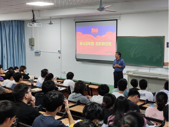 学院党委书记胡先文围绕“奋斗百年路 启航新征程”进行授课,2021年是中国共产党成立一百周年,国际社会讨论中国共产党带领中国实现巨变的热度持续升温。中国共产党带领全国各族人民实现了国家独立、民族解放、人民幸福。中国共产党之所以历经百年而风华正茂、饱经磨难而生生不息,靠的就是弘扬伟大建党精神。胡书记讲到,每一名新时代大学生都要坚定不移地听党话、跟党走,把个人理想融入时代主题、汇入复兴伟业,勇做担当民族复兴大任的时代新人。