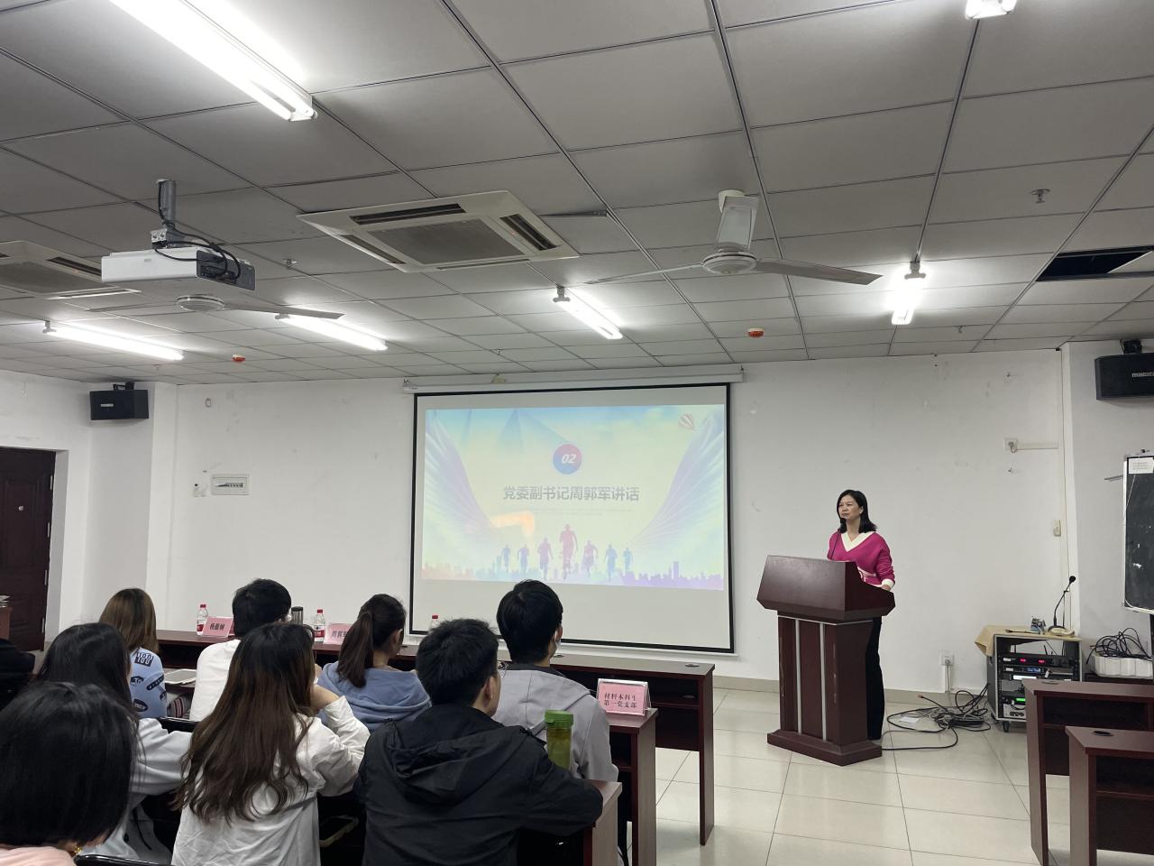 活动中,周郭军副书记发表了简短的讲话,她对同学们备考状态给予了肯定,她祝愿同学们“一切真心不被辜负,一切努力终有收获”,并提出几点希望:一是要在最后的冲刺复习阶段,保持良好的学习状态,按照既定的安排理性备考,不骄不躁,持续发力。二是要在这个特殊的阶段,劳逸结合,不必刻意加码,增添身心负担。三是学院领导、老师会尽全力切实解决同学们备考过程中遇到的困难与诉求。2018级辅导员郎筱宇老师也与同学们进行了亲切的交流,送上了最真挚的鼓励与祝福“成功上岸”。