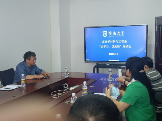 2022年5月10日,高分子系教工党支部党员集中进行了“讲学习,谋发展”专题学习会,会议由赵艳芳书记主持,学院党委书记胡先文出席并讲授了党课。
