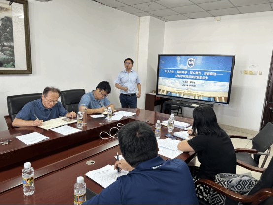 邓意达院长做了《以人为本,教研并举,凝心聚力,奋勇直追-学院高质量发展的思考》的主题汇报,指出过去三年时间里学院发展取得了长足进步,尤其在人才引进与学科建设等方面取得了显著成绩,今年学院国家自然科学基金立项数目达到了22项,创历史性突破,整体发展态势良好。然而,与其他知名高校材料专业相比,学院依然存在差距明显:师资水平和人才队伍培养有待提高;学科的本科教学整体水平还比较落后,缺乏国家级的教学实验平台、教学团队、教学名师、教学成果奖、金课和规划教材等高质量成果;学生培养质量依然不高,留琼就业及创业率较低,在学科竞赛中有待进一步突破;科研整体水平亟需加强,大型平台建设滞后,国家级奖项和顶刊论文有待突破,产学研一体化有待加强,成果转化能力差;原有研究方向分散且显示度弱,无法适应新时代自贸港建设发展。