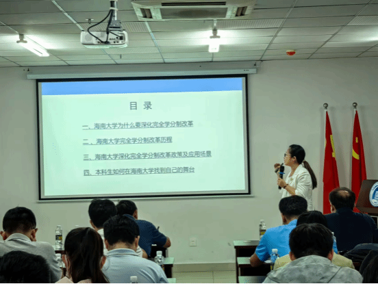 宣讲会上, 李玉凤副处长从小宝影院 为什么要深化完全学分制改革、小宝影院 完全学分制改革历程、深化完全学分制改革政策及应用场景等方面进行了全面阐述和详细解读。深化完全学分制改革是学校目前重点工作之一。完全学分制改革坚持以人为本,尊重学生的主体性和差异性,通过修订人才培养方案、深化学业评价体系改革、创新教学模式、推进教育数字化建设等,给予本科学生四年中七次自主选择专业的机会,提升学生的自主学习能力,增强其综合素质和实践能力,为未来的职业发展奠定坚实基础。同时,通过完全学分制改革促进学校合理配置教学资源,实现教育资源的优化配置。