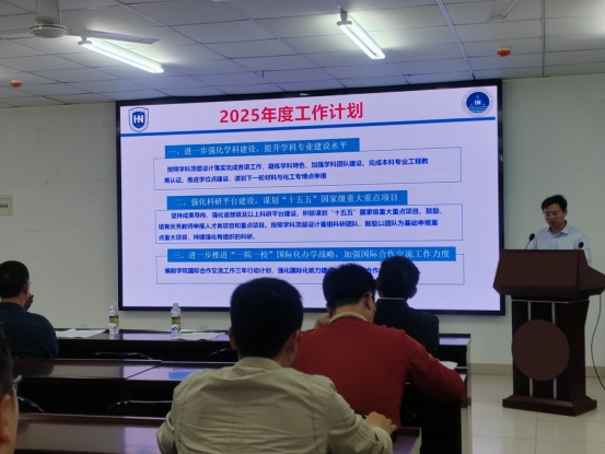 邓意达院长对学院2024年亮点工作进行总结并对学院2025年度重点工作任务进行说明。他从学科建设、本科生教学、研究生教学、科学研究、人才引进、国际交流与合作等六个方面总结了学院2024年工作,说明了学院2025年度三大重点工作任务:一是进一步强化学科建设,提升学科专业建设水平;二是强化科研平台建设,谋划“十五五”国家级重大重点项目;三是进一步推进“一院一校”国际化办学战略,加强国际合作交流工作力度。