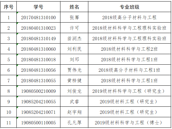 附:拟获材料学院2021年度“优秀大学生”称号名单