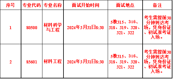 面试内容主要包含专业知识考核(40%)、综合能力考核(40%)以及英语应用能力考核(20%)。①专业知识考核主要考查考生对本学科(专业)理论知识的掌握程度以及考生的专业能力素养。②综合能力考核重点考查考生大学阶段德智体美劳全面发展情况,突出对考生创新能力的考查。③英语应用能力考核重点考查考生对外语基本知识的掌握、表达能力。考生使用初试外语语种进行口头测试。每位考生的面试时间一般为20分钟。面试总分为100分。