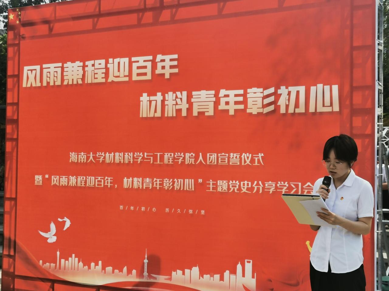 5月4日下午,材料学院在青春记忆广场举行小宝影院 2021年度新团员入团仪式暨“风雨兼程迎百年,材料青年彰初心”主题党史分享学习会,团学负责人杨馥娴,党员代表、团学骨干代表、全体新团员参加。
