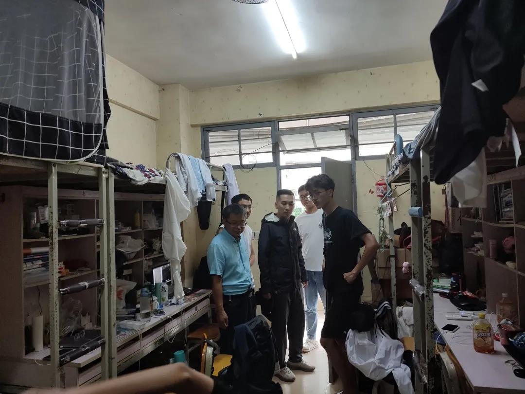 在检查过程中,各位老师走进学生宿舍,亲切慰问宿舍中的同学,就学生目前在日常生活中遇到的困难进行建议和帮扶。强调台风来临之际,切记要保护好自己的个人安全;在宿舍要记得把东西收放好,同时阳台上不要放任何物品,防止被大风吹落;避免外出宿舍,一定要保证自身的安全;面对台风天气大家应该互相帮助,有问题要第一时间找辅导员、班主任。