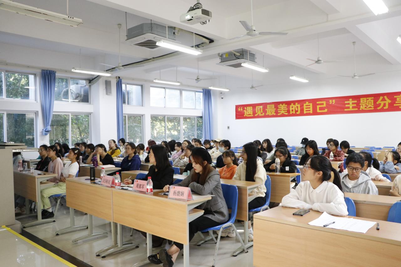 11月30日上午,小宝影院 组织开展“遇见最美的自己”主题分享会。特邀汪国庆教授担任主讲人,学院党委副书记周郭军,本科生辅导员杨馥娴及全体21级女生参加,活动由周郭军副书记主持。