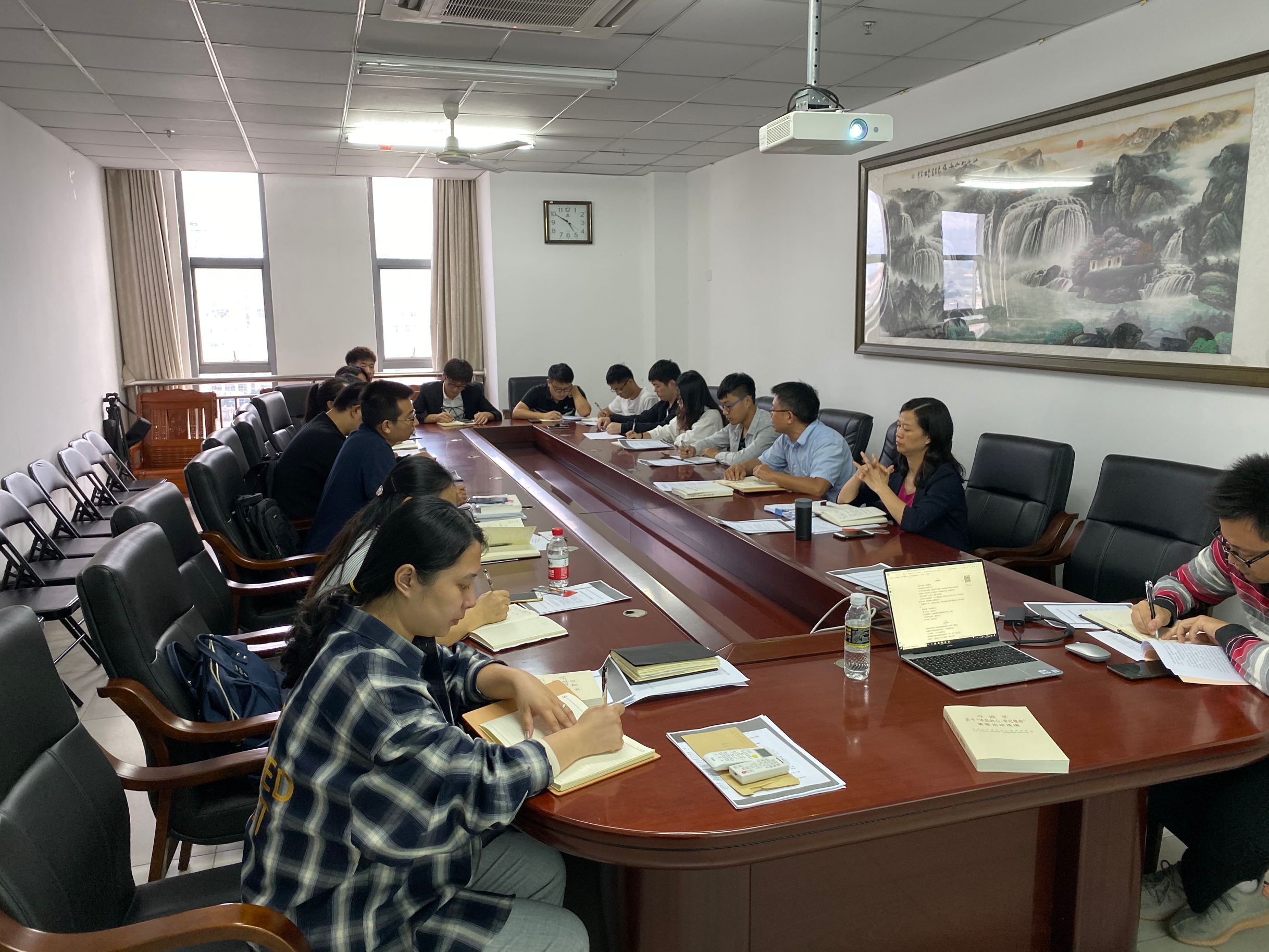 10月29日下午,小宝影院 主题教育”学院学习研讨会于研发中心717举行。学院党委副书记胡先文、副处级辅导员周郭军、各支部书记及党员代表参加了此次分享会,会议由胡先文副书记主持。